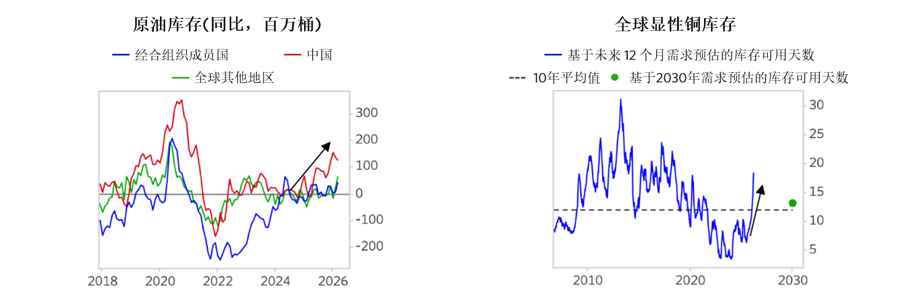 在冲突爆发前,受人工智能相关资本支出、军备重整和地缘政治竞争驱动,多个战略商品市场出现资源争夺的情况。各国政府和企业主动储备关键原材料,从以往准时高效的供应链,转向更具韧性的供应模式。具体体现在:扩大石油储备(如中国);作为AI资本开支热潮核心原料的铜库存持续累积;在中国去年于中美谈判中成功运用其稀土领域主导地位后,各国开始由政策推动的稀土战略储备。
