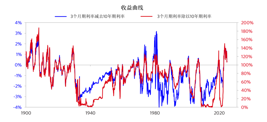 5 在衡量收益曲线时,我会同时考察以下两个指标:短期利率减去长期利率的值与短期利率和长期利率的比值。
