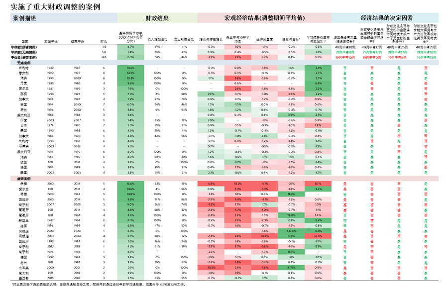 尽管这样的预算赤字削减规模较大,但从历史标准来看,并不算非常巨大。下表列出了自1960年以来所有国家实施的主要财政紧缩政策。它表明,如果在以下情况下实施大规模的财政紧缩(占GDP的3%甚至更多)政策,效果会很好:(1)经济增长强劲,(2)货币与汇率政策宽松,(3)债务以央行能够印制的货币计价。值得注意的是,在这些案例中,财政紧缩有助于降低债券收益率,从而减少债务的利息成本,并鼓励私人部门活动,以增加税收。如果财政紧缩对经济的削弱程度超出预期,还会引发货币宽松政策,从而消除财政紧缩对经济的影响。美国最成功的预算赤字削减案例发生在1993-1998年,在这些年中,从占GDP的4%的赤字转变为盈余1%(改善了5%的 GDP),这相当于在今天削减了 1.5万亿美元的赤字。而我的计划将削减的赤字规模远低于这一数字。